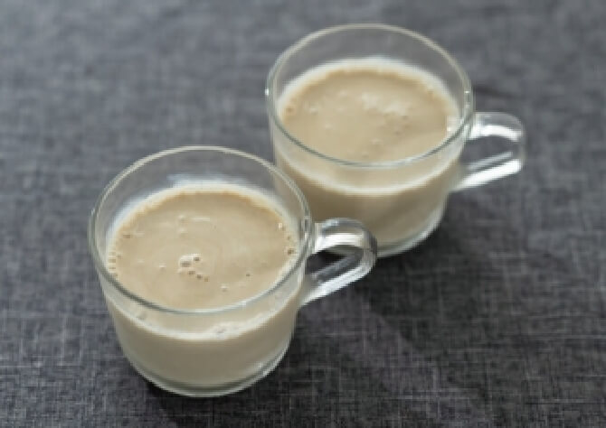 ビーマイフローラ1包、クレンズファースト1包、豆乳150mlをよく混ぜて完成。