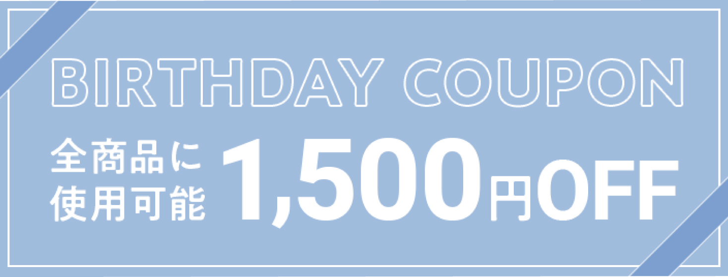 ご登録いただいたお誕生月の特典として、1,500円分のクーポンをプレゼントいたします。