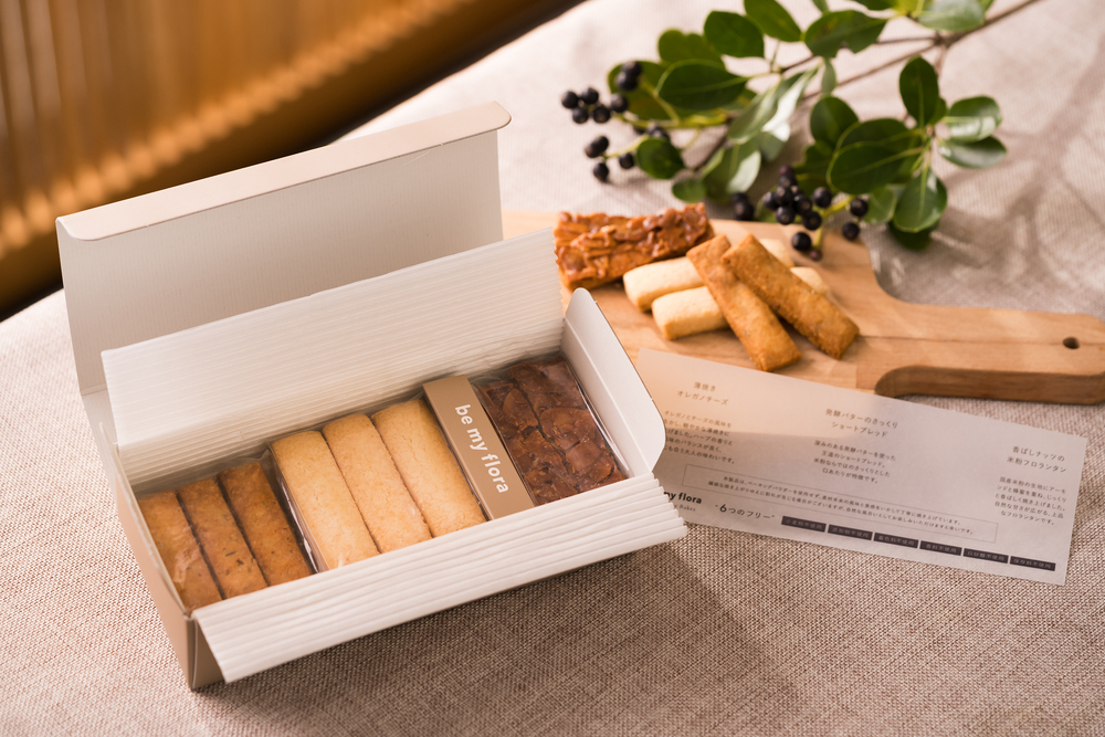 香ばしナッツのフロランタン、発酵バターのさっくりショートブレッド、薄焼きオレガノチーズの3種のお味をお楽しみいただけます。
